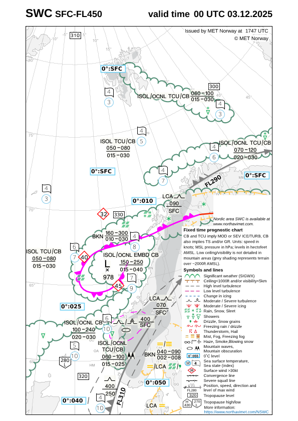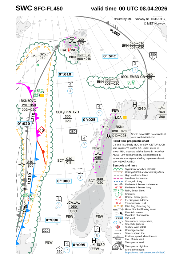 This service delivers Significant Weather Charts in PNG format, covering the Nordic area, Svalbard and the Norwegian Sea.